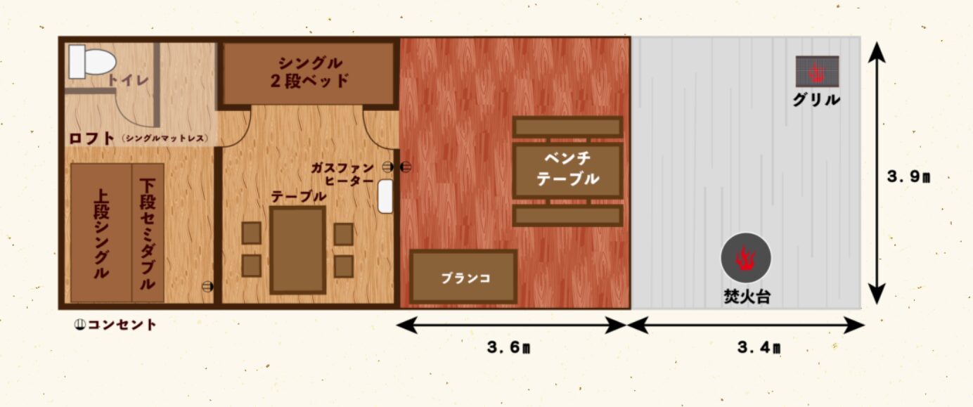 2ルームキャビン”焚火”TAKIBIを選んだポイント