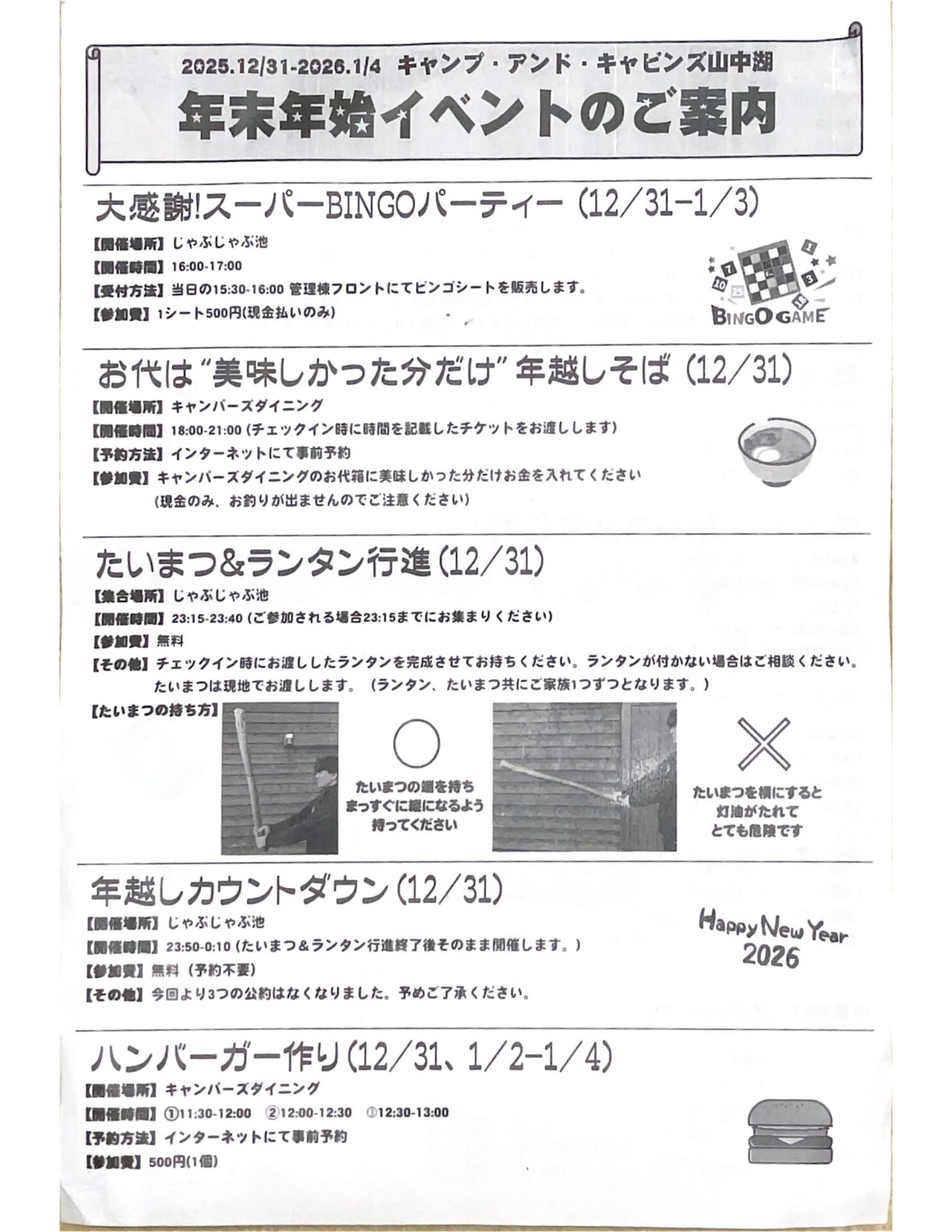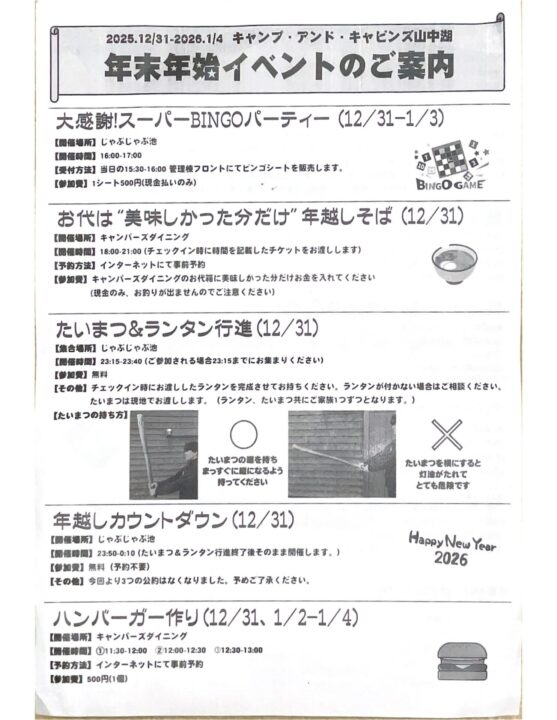 2025年12月31日から2泊3日で体験した年末年始のイベントやキャンプ場のレビューを紹介します。