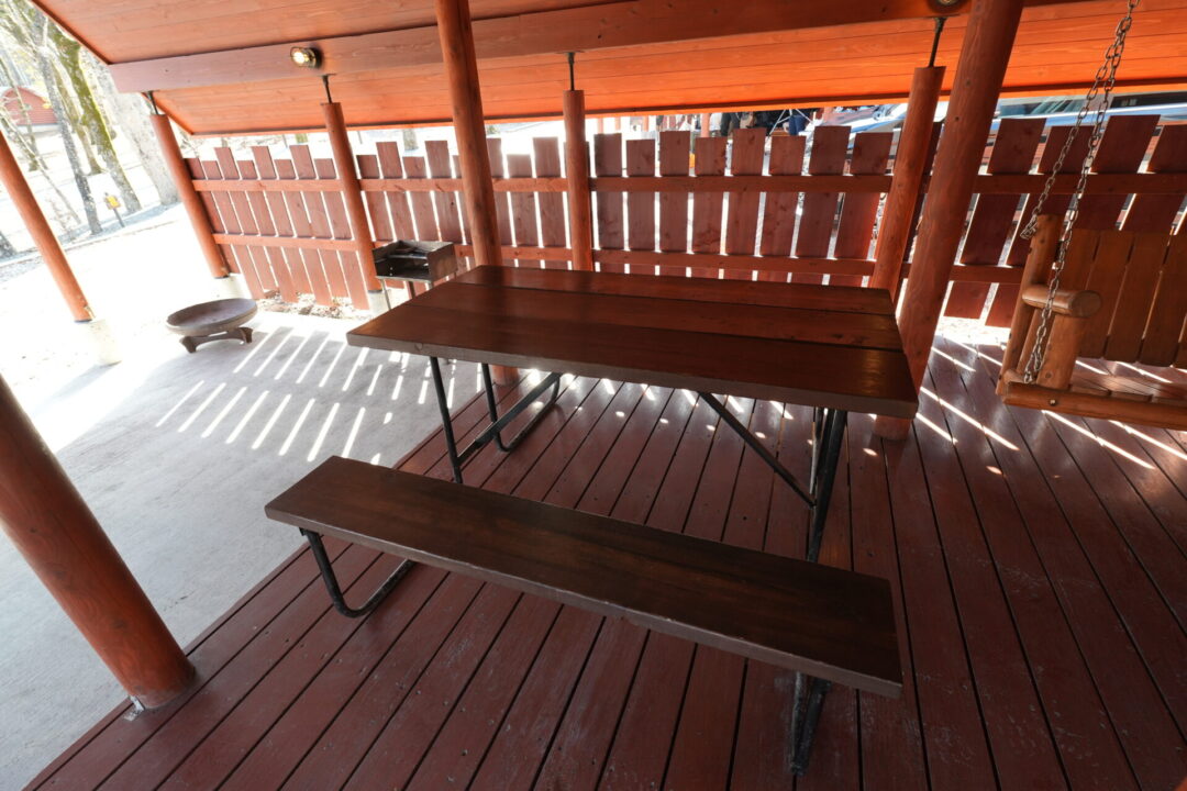 2ルームキャビンとコテージは室内、室外にテーブルと椅子(室外はベンチ)が備え付けであります。