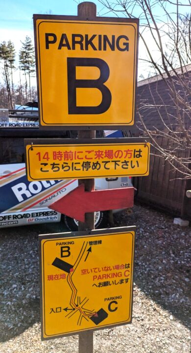 14時前にチェックインする場合は敷地に入ってすぐの駐車場Bに車を停めて管理棟に向かいます。
