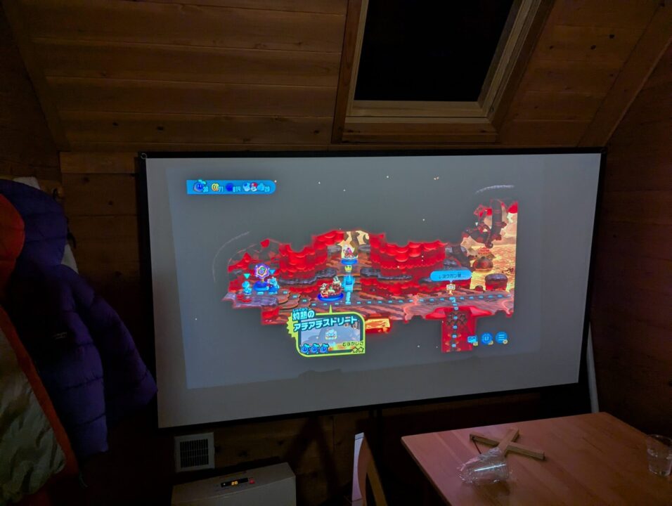わが家はプロジェクターを準備していたのでswitchをつなぎ家族みんなで楽しみました。
