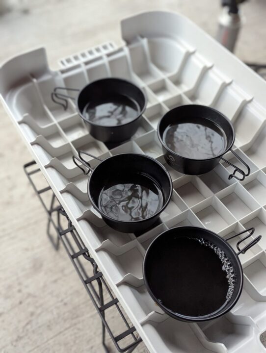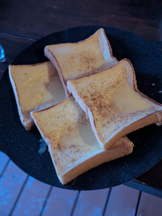 今回シェカップとマルチグリドルを準備していきましたが、キャビンに戻るまで距離があるので数回こぼしました。