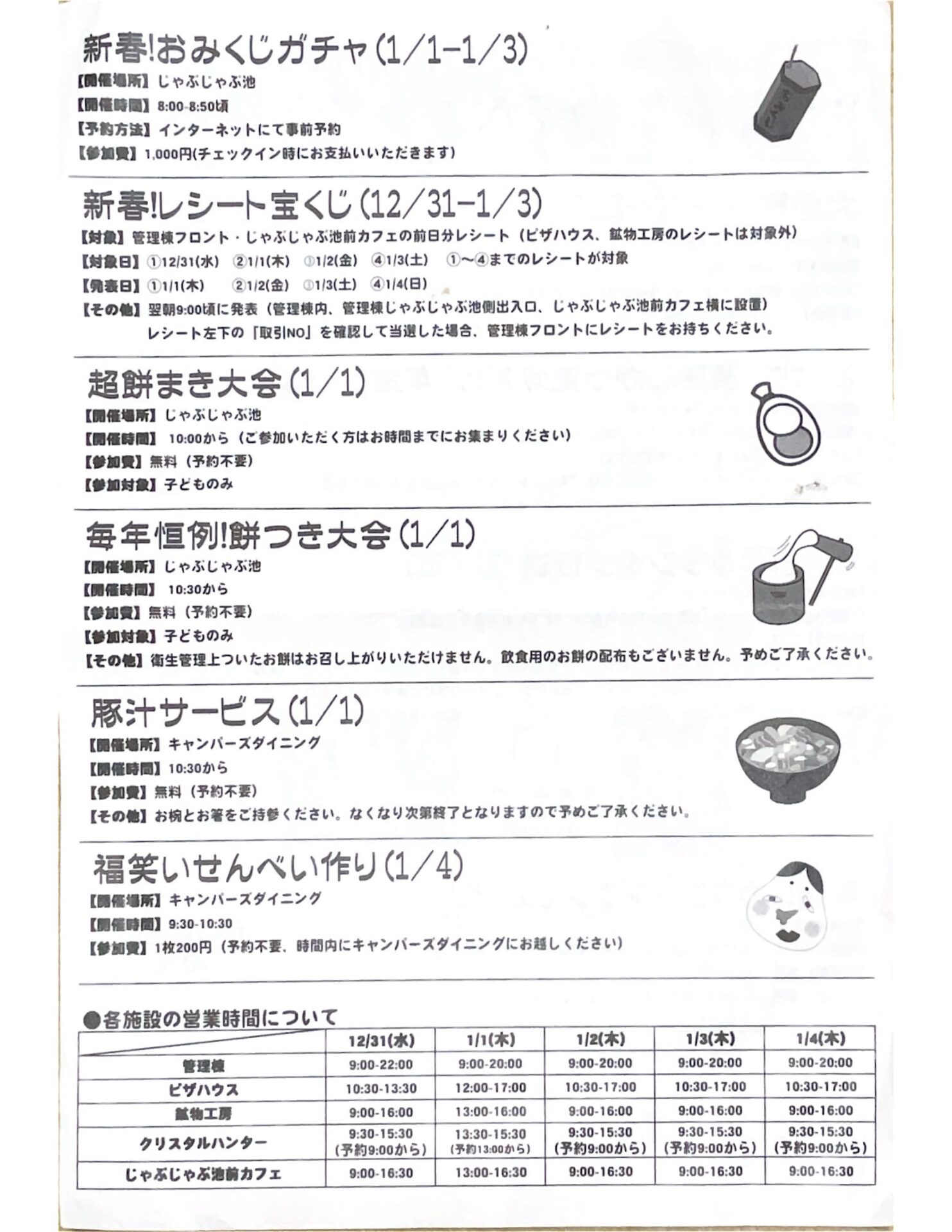 【年越しそば】【新春!おみくじガチャ】は事前ネット予約が必要でした。