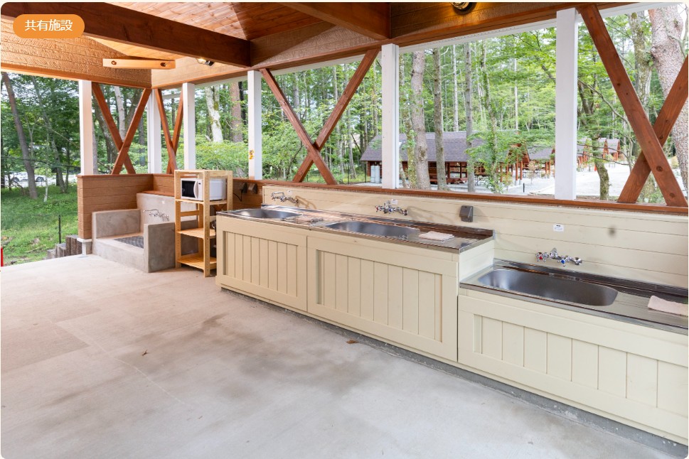 温水も出るので冬の洗物も問題なくできますが備え付けのスポンジ、洗剤はありませんので自然石鹸、アウトドア洗剤など環境に配慮された物を準備しましょう。