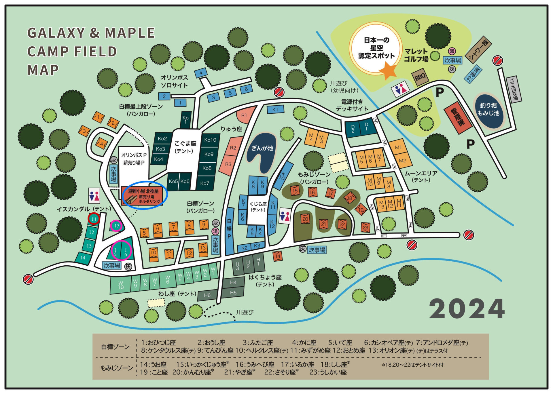 今回利用したイスカンダルはキャンプ場内で一番奥まった場所に位置します。(マップ左下)