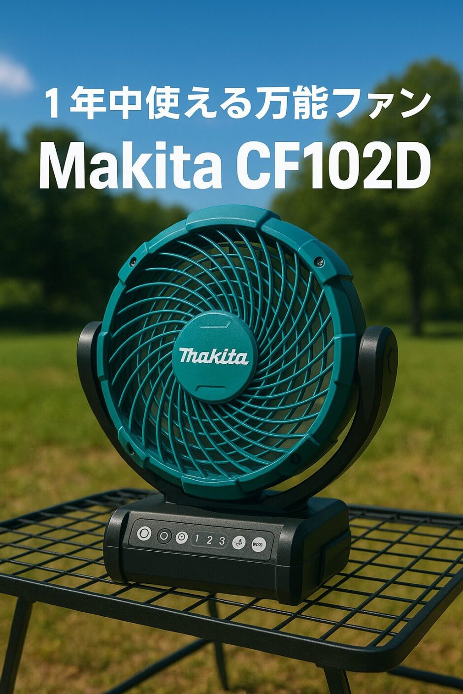 マキタ(makita)は、電動工具や充電式工具で有名な日本のメーカーです。特にDIYやプロの建設作業で使用される製品が多く、ドリル、インパクトドライバー、丸ノコ、芝刈り機などを展開しています。特徴は軽量・高性能で使いやすい点と、バッテリー1つで複数のツールを使える「18Vバッテリーシリーズ」がある点です。女性にも扱いやすいコンパクトモデルや家庭用製品も豊富で、家庭用ガーデニングでのDIYや庭作業にぴったりのブランドです。そんなmakitaの充電式ファンには数種類モデルがあります。使用するバッテリーにより連続使用時間が異なります。今回はCF102Dについて説明していきます。